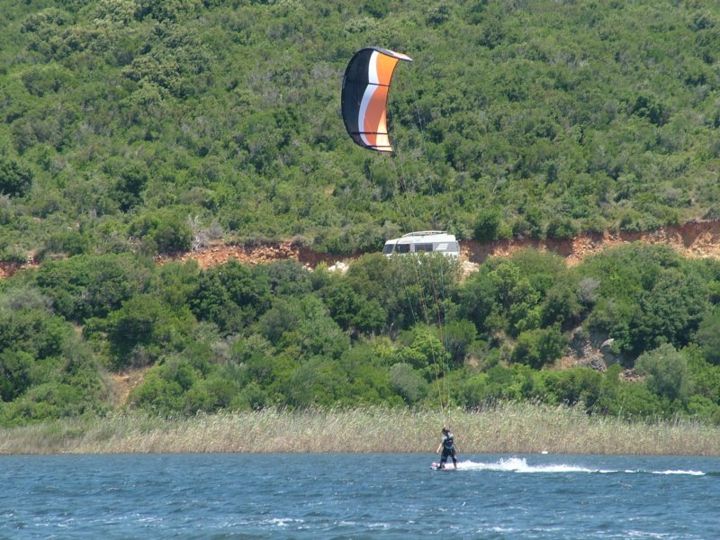 We went to Greece via ferry boat from Venice - quite long and expensive trip. Then we did kitesurfing at 2 location at Lefkas island - Mlyny and Mushow beach. Mushow beach is the best for freestyle tricks ever, totally flat.